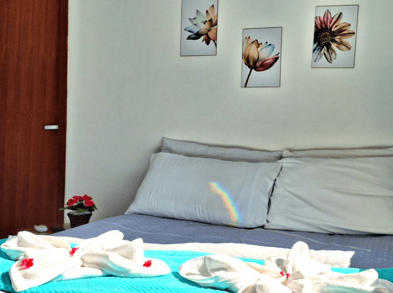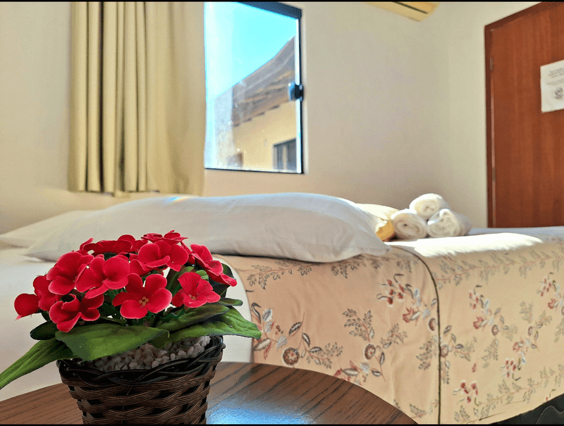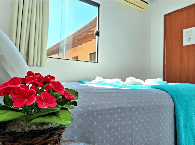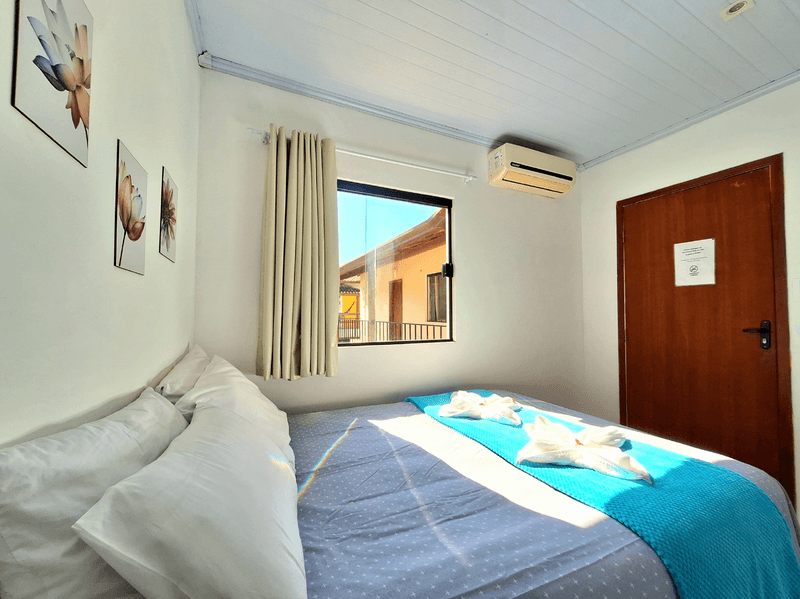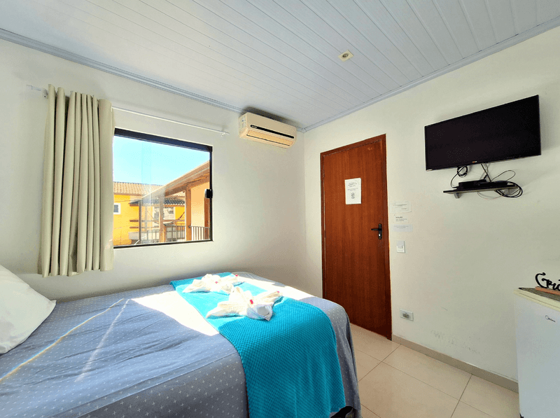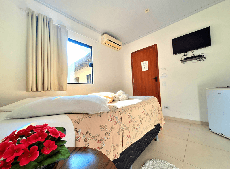 Possui 01 cama casal e 01 solteiro, lençol 100% algodão, Tv, Wi-fi gratuito, ar condicionado e frigobar.